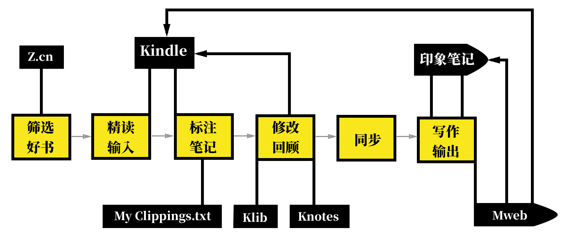 当然有,这也是本周这节课的主题。经过我的长期实践和研究,如果想用 Kindle 去吃透一本书,是有科学的方法和流程和遵循的,我把这个流程叫「读书笔记流」。