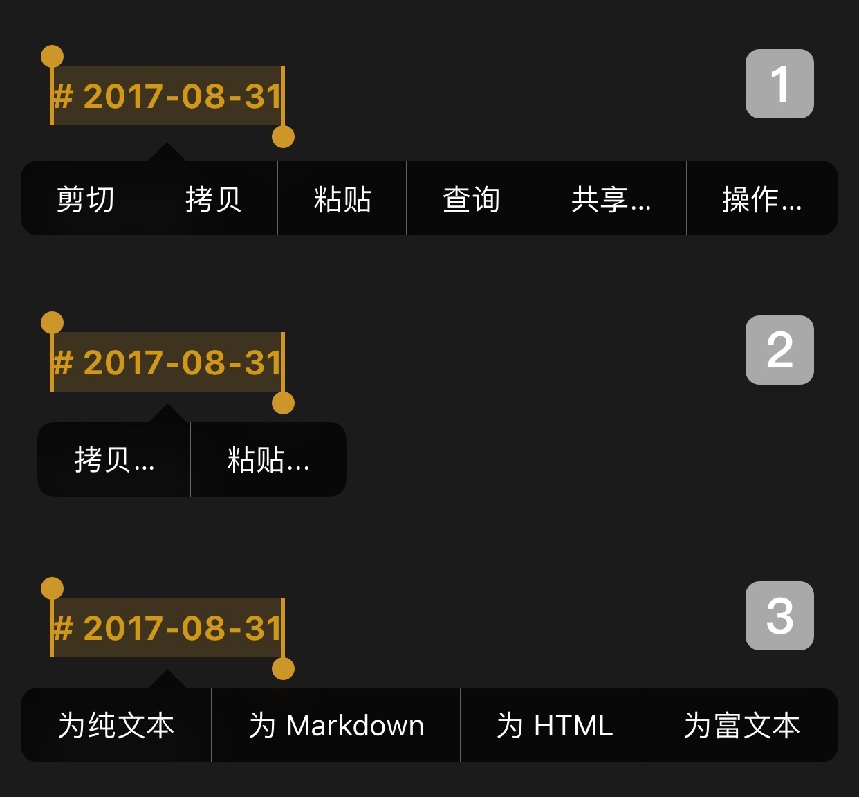 在 11.2 版本中,Ulysses 更新了其复制和粘贴的姿势,这原本是 Ulysses Mac 版的功能,最近终于来到了 iOS。