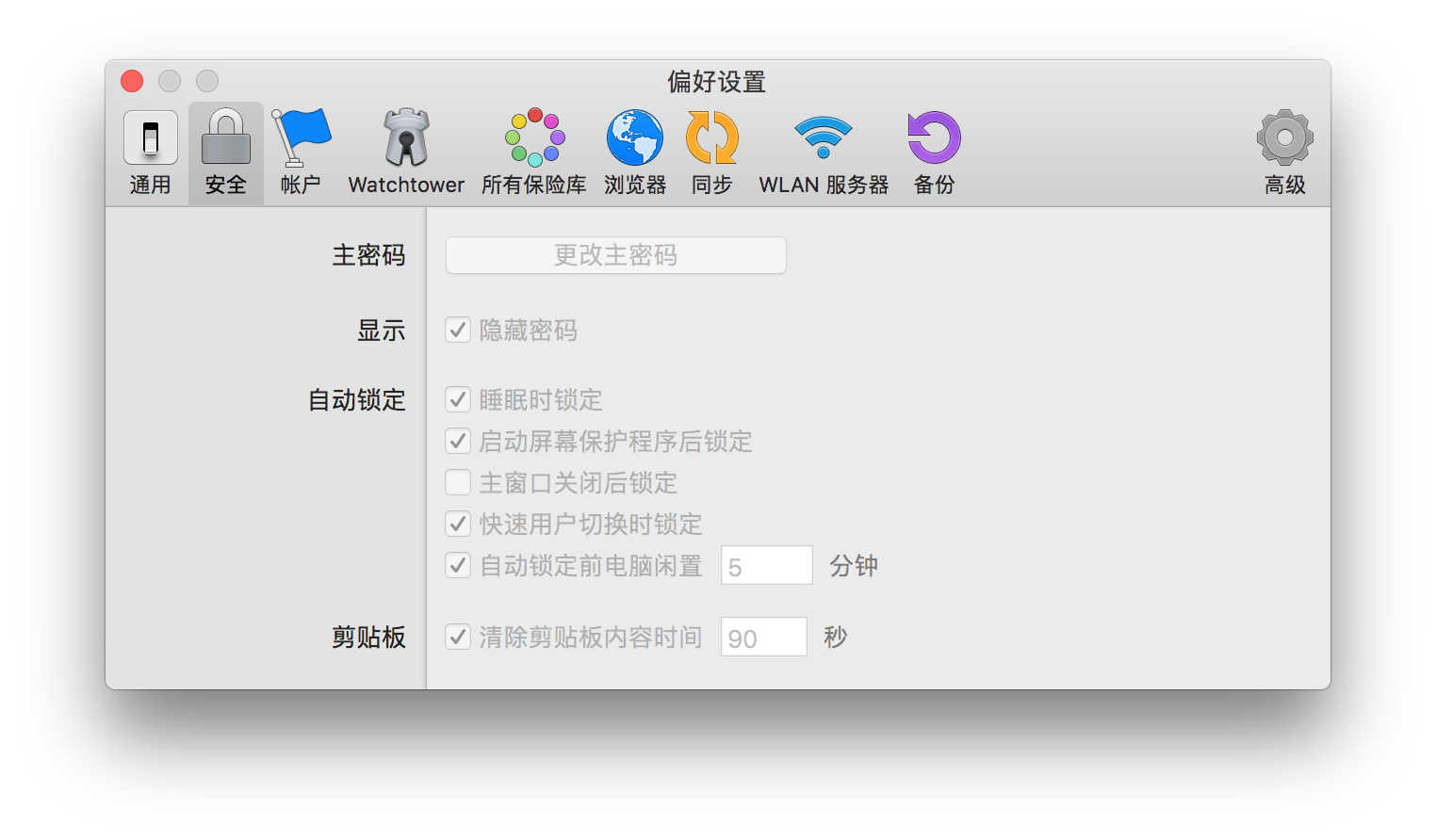 剪切板容易遗漏敏感信息很容易理解,因此 macOS 上的 1Password 可以设置在复制密码后数秒重置剪切板: