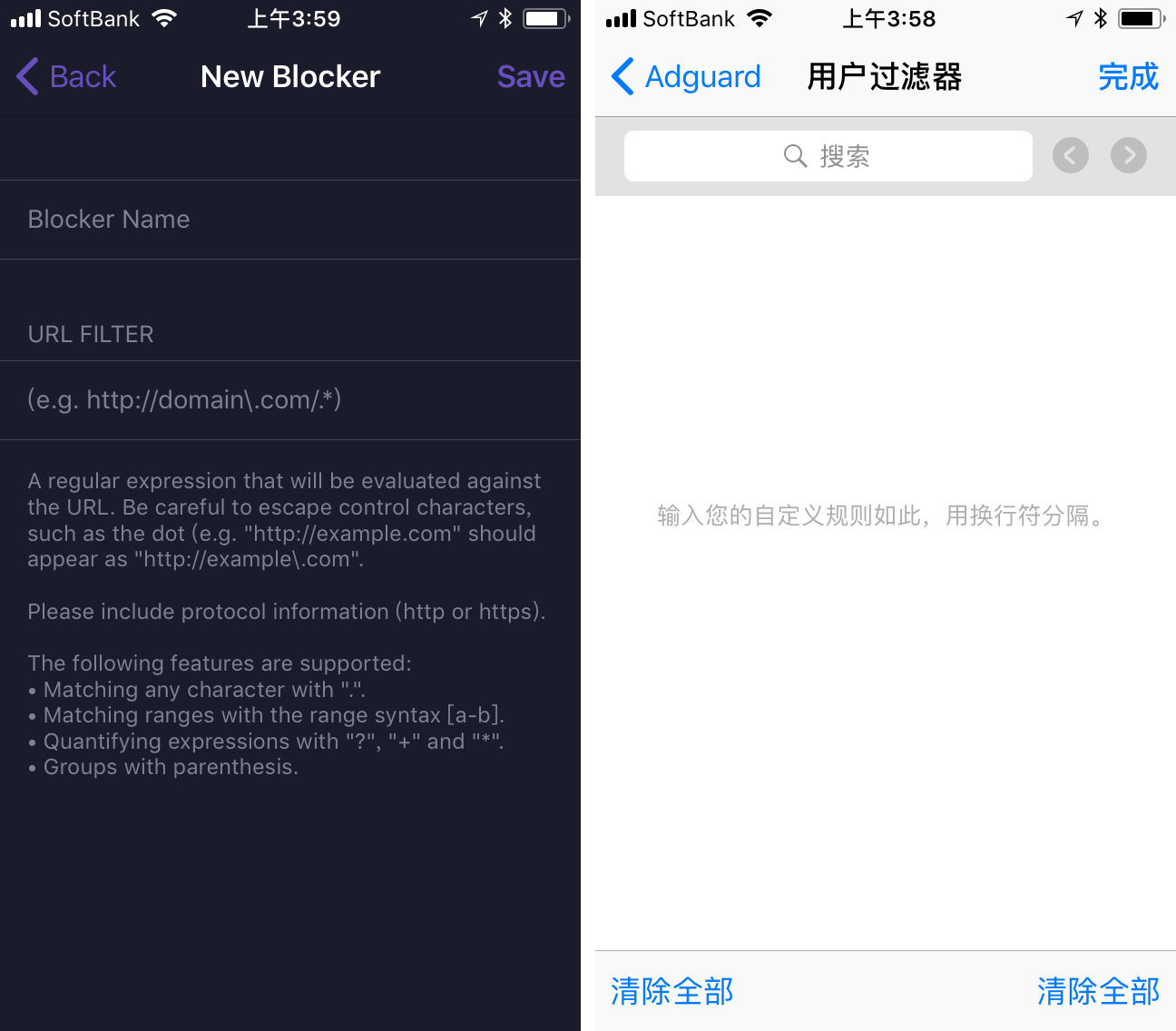 因此,凭借这一点,我们可以就可以把优秀工具的范围缩小很多。如今,在 iOS 上能自定义规则、并且在诸多体验上都做得好的工具,我认为是 1Blocker 与 Adguard 这两款应用。 注: