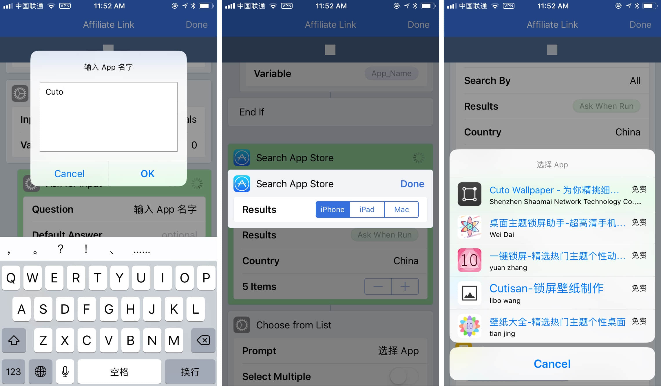 我最喜欢这个 Workflow 动作的一点是,它可以让我选择应用平台(iPhone、iPad、Mac),并且还能将搜索结果返回一个列表让我进行确认,非常符合 iOS 这种直观的操作特性。