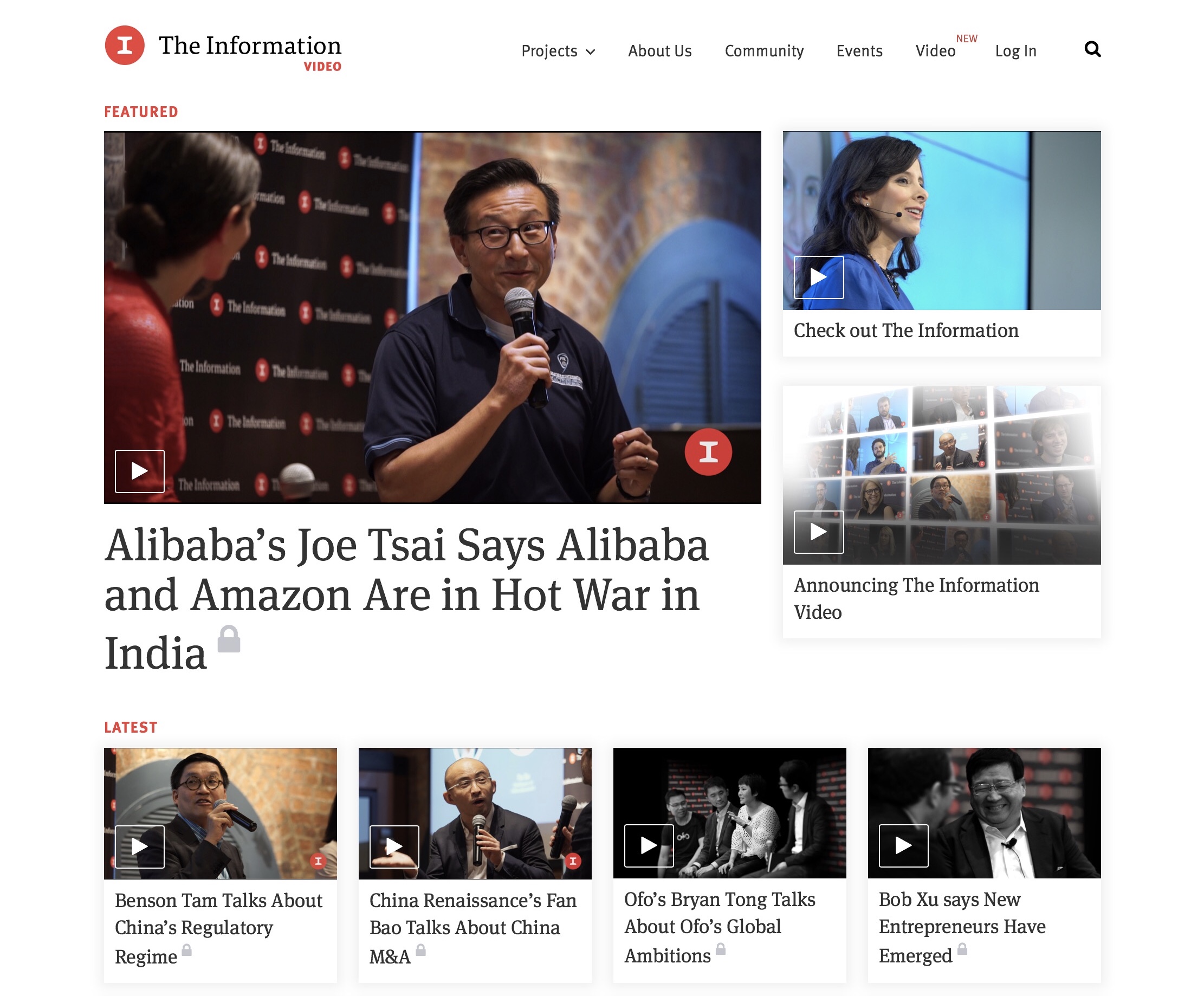 @Platycodon:本周,The Information 又新增了「视频」板块,收录了历次线下活动中嘉宾访谈的录像。不过,这些活动录像原本也就是对订户开放的,只不过散落在各次活动后发布的总结文章中,视频板块只是将它们整合起来了。但访谈的频率毕竟不高,The Information 日后或许还会给视频板块增加专门制作的内容,进一步增强其订阅服务的丰富性和吸引力。