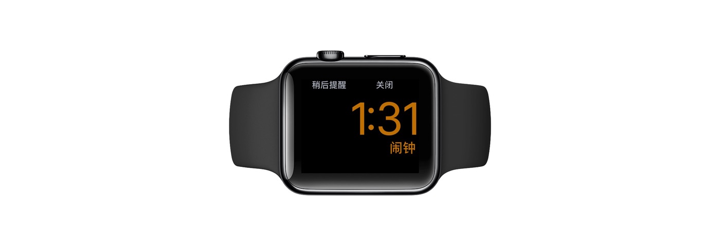 如果你给 Apple Watch 设置了闹钟,它会提前 5 分钟持续亮屏,闹钟响的时候则是以声音的方式提醒。