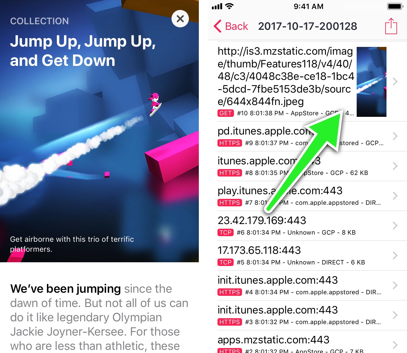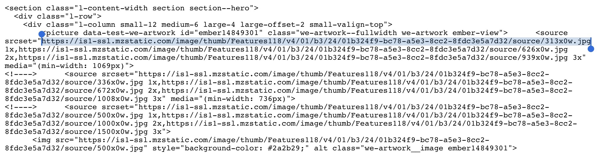 当我把这件事儿发到社交网络上之后,得到了一些朋友的回应。其中有部分朋友不太会使用这类网络调试工具,感到很困惑。后来经 @文刀漢三 提醒才发现,原来 App Of The Day 这类专题都是有分享链接的,在页面的最下方可以使用 Share Sheet 将专题页面分享出去。这就好办了,利用 Workflow 分析网页的 HTML 代码,就能够将特定的资源抓取出来了。 分析网页代码