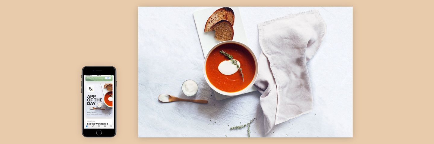 前些日子逛 App Store 时,发现 App Store 首页 App Of The Day 等专题的背景图大都很漂亮,拿来当壁纸是完全没问题的,比如下面这张厨房故事的背景图。