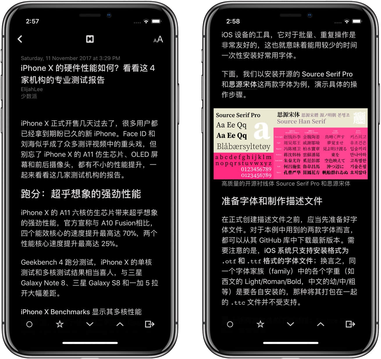 值得一提的是,另一款出色的 RSS 客户端 Reeder 也支持纯黑色主题,同样也是阅读体验非常好。
