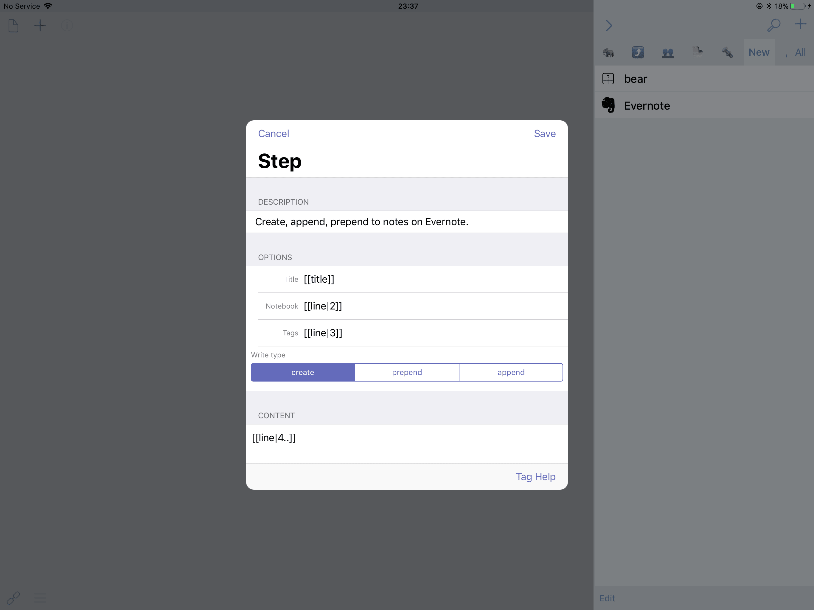 这篇文章讲解的,就是将 Drafts 的第一行内容作为标题(Title)、第二行作为标签(Tag),剩下的作为正文,发送到 Bear。我们当然也可以举一反三,应用到「发送到 Evernote」等动作里。