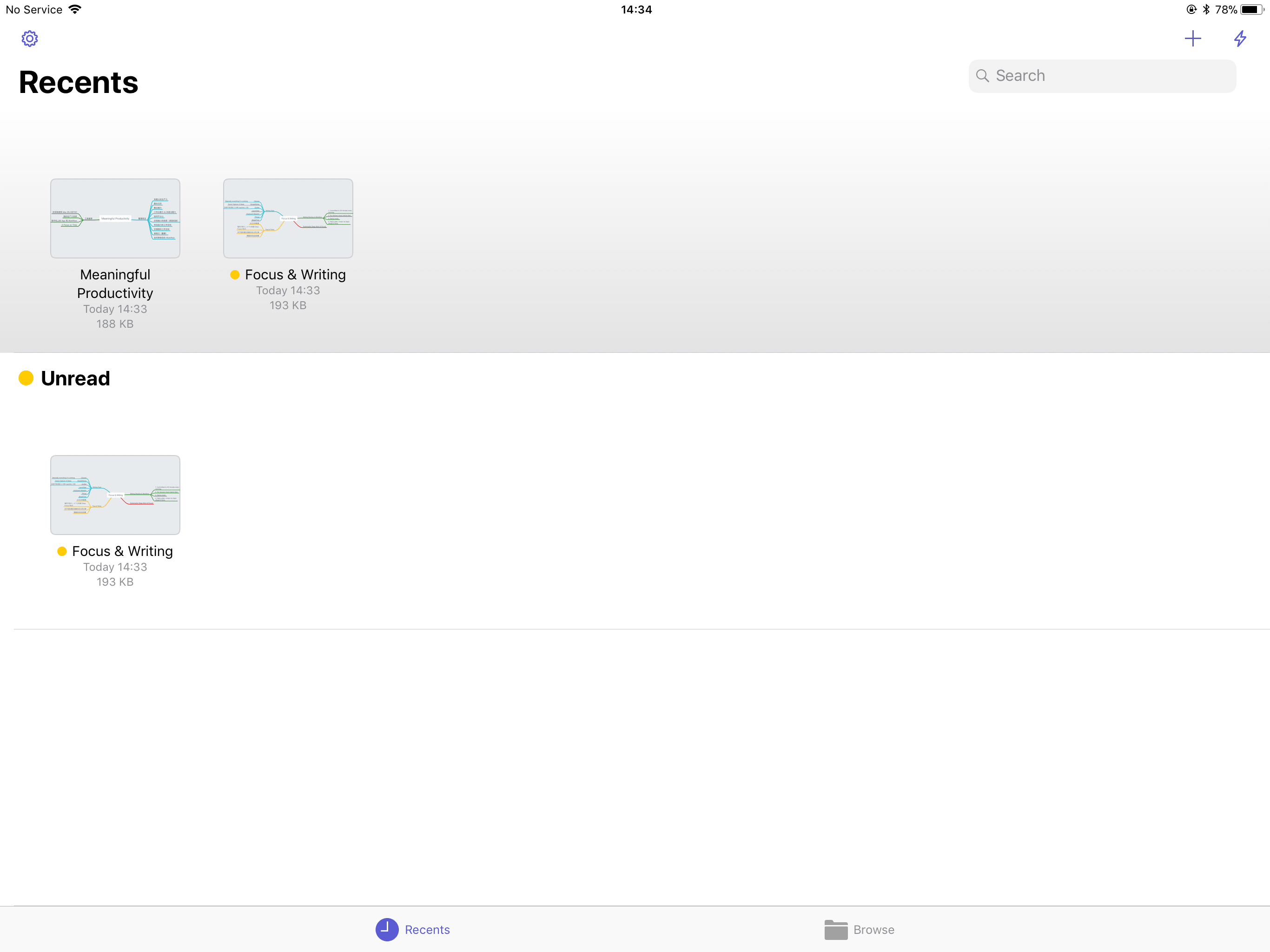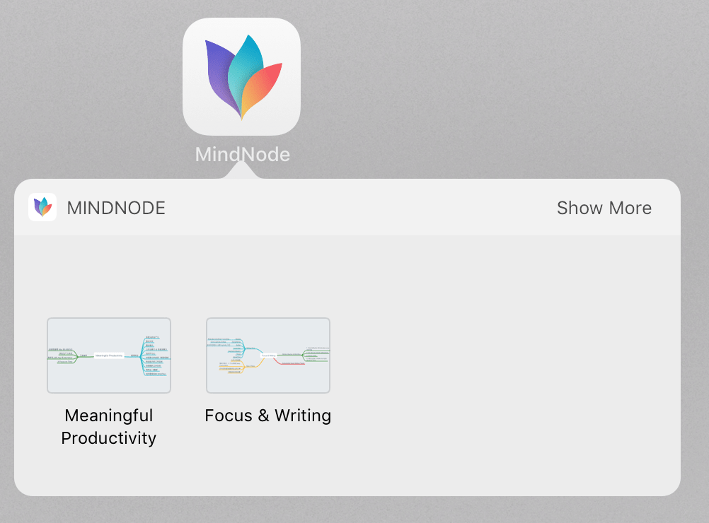 在长按 App Icon 后,MindNode 可以显示最近浏览的文件,这个也是 iOS 11 上的新特性之一,这同样被大多数 App 给忽视了。