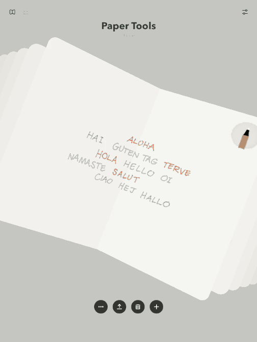 @Minja:4.0 版本采用了 SceneKit 3D 图形框架,让 Paper 的动画效果更加逼真,使用体验更接近真实的手帐。我和同学在雕塑课上会使用 Paper 来绘制原型,它没有复杂的工具和可供调节的选项,但是配合 Apple Pencil 可以做到「信手拈来」的使用效果。