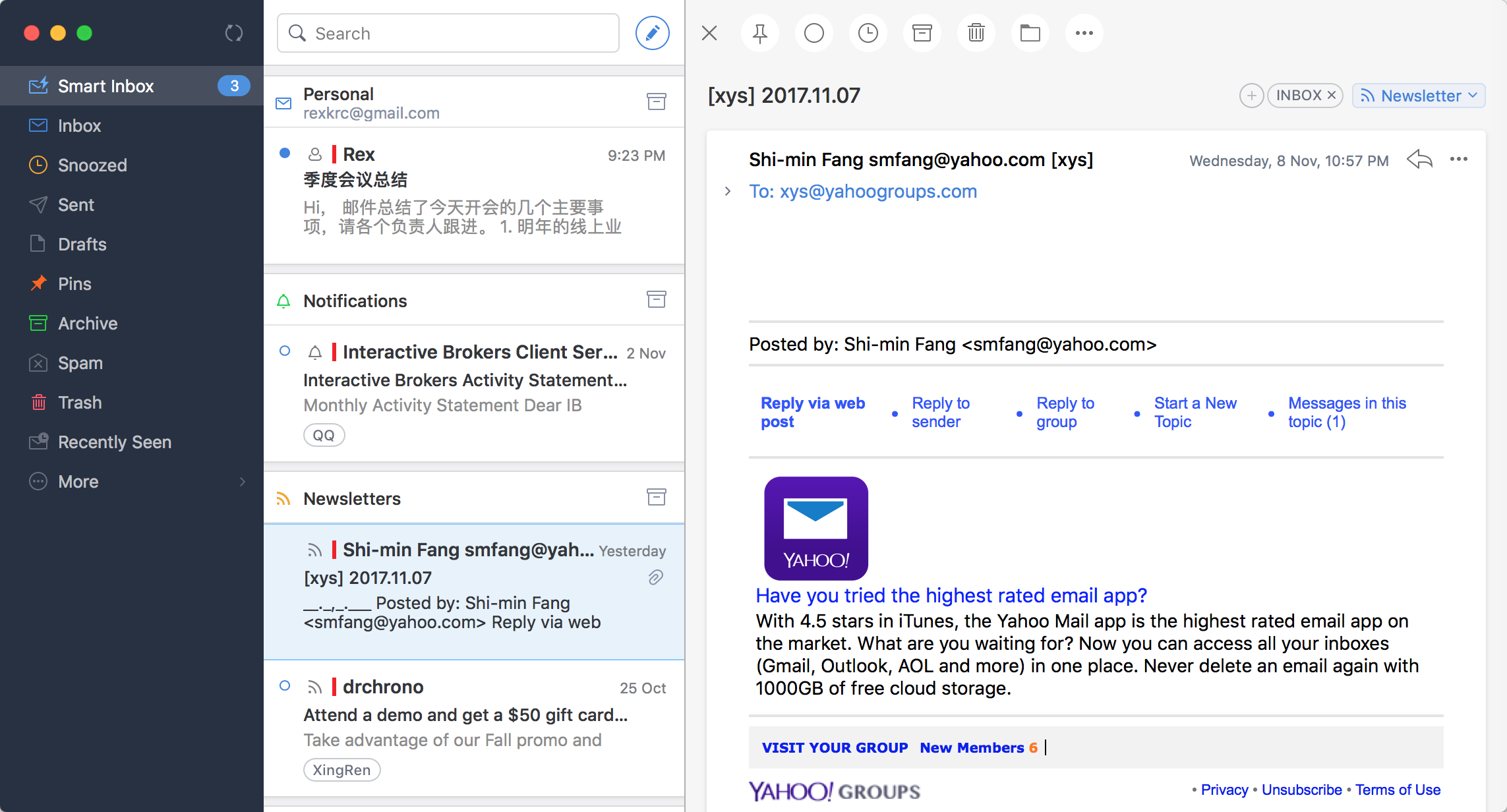 在我看来,无论是 Spark 的 Smart Inbox,还是 Gmail 的类别,都没有很好地真正解决这一需求。首先,Smart Inbox 还是将每个类别的邮件,都无差别地显示在了收件箱当中,尽管被归类,却并没有被弱化。其次,无论是 Spark 还是 Gmail,这个类别都是事先定义的,作为用户无权修改。