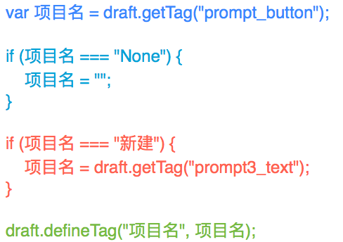 多数读者已经对 URL Scheme 有了一点了解,那么,如何把 Prompt 里按下的按钮或输入的内容转变成 URL Schemes 里的数据?我们需要用的一段 JavaScript 脚本,在 Prompt 和 URL Schemes 之间搭起一座传递「项目名」和「旗标」的桥梁。