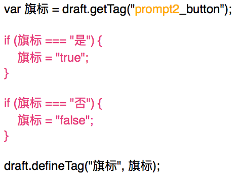 不过添加旗标的脚本稍稍有不同,因为最后的 URL Schemes 只能接受 true 或 false,但是 Prompt 里显示的是 是/否 这样更直观的文字,所以对应的脚本就有把 是/否 转为 true/false 的功能(粉色部分):