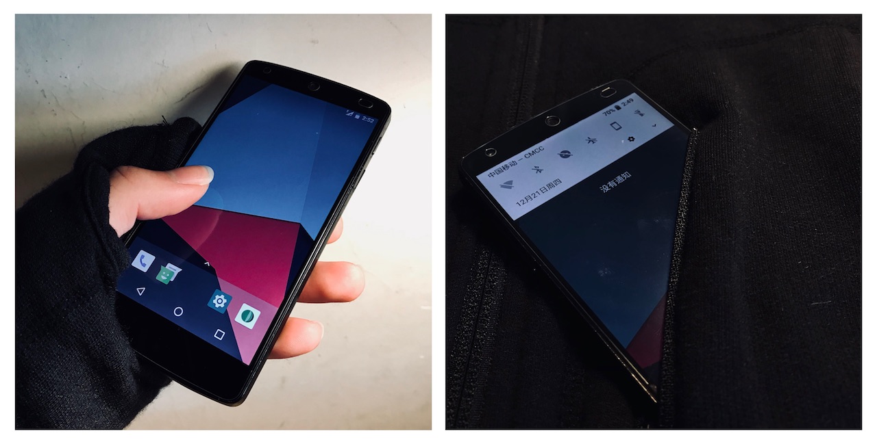 拥有一只胸袋,可以安放五寸屏以下的手机。
