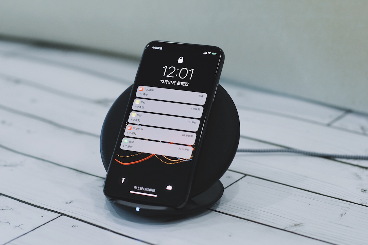 iPhone X 用户非常适合立式底座。当 iPhone X 收到通知时,会自动亮屏,这时你只需要看一眼立在你边上、面朝向你的手机,通知就会自动展开显示内容,你不需要动手就能直接看到通知详情(因为这时你的手机已经解锁)。这是一种相当赞的体验。