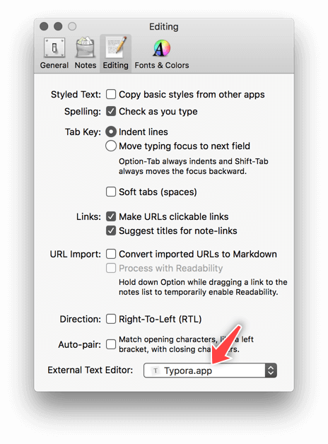 过去我使用原生便笺、备忘录作为草稿工具时,只能把文本复制粘贴进主力写作工具。好在 nvALT 彻底解决了编辑器切换的麻烦,我可以为 nvALT 里的文件设置一个拓展编辑器(我用的是 Typora)。