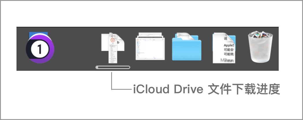 在指定了截图文件夹之后,我建议把这个文件夹放到 Dock 上,方便快速获取。同时,如果使用 iCloud Drive 的时候,可以在 Dock 上看到下载进度: