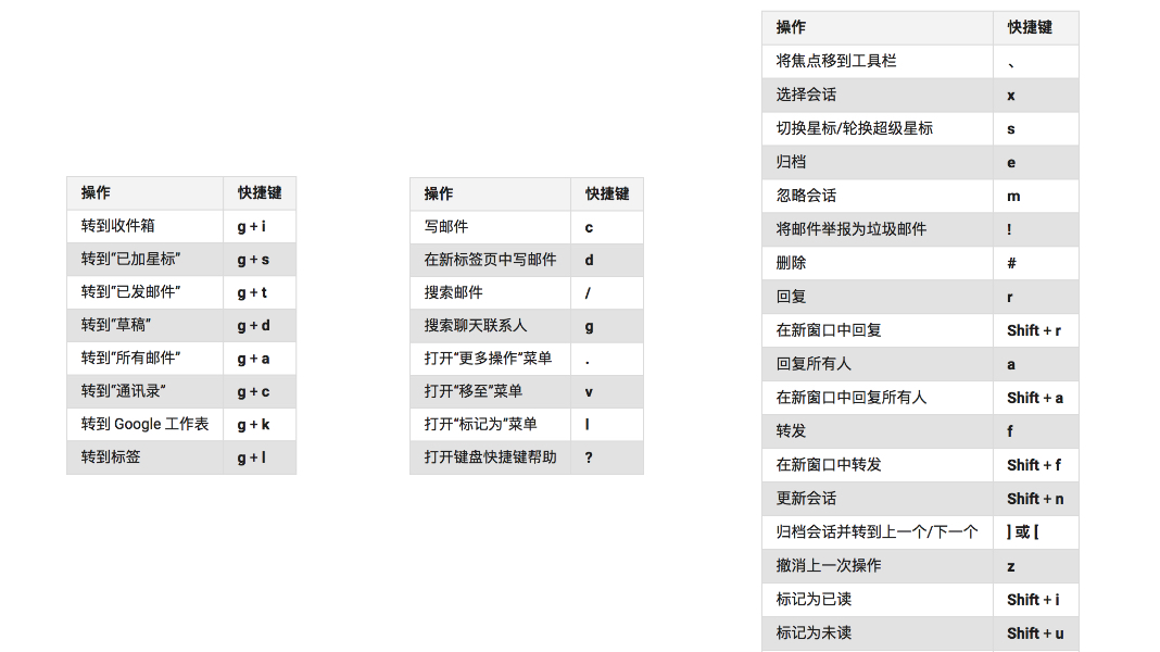 有些网页 App 是自带快捷键的,但可能跟你平时的使用习惯不一样,比如 Gmail,快捷键主要都是单独的一个字母键,你也可以用同样的方法将它们改成别的快捷键。
