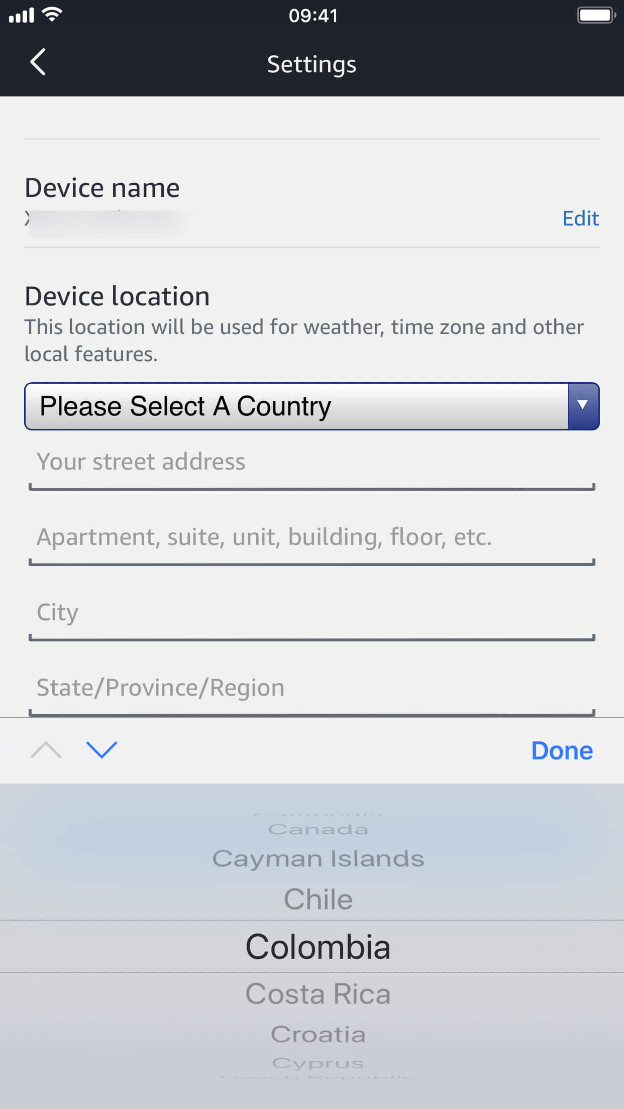 注册时,我发现目前 Alexa 支持地区里没有中国,这意味着它没办法使用定位服务,所以天气数据就无法正常获取了,我每次只能明确地问她「Alexa,What’s the weather like in Shenzhen today」来了解天气,这点感觉真的不方便。