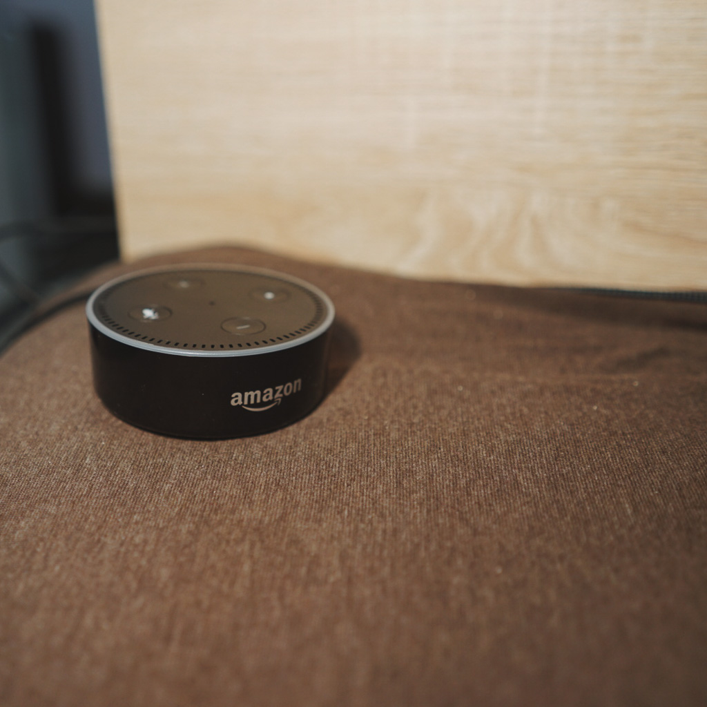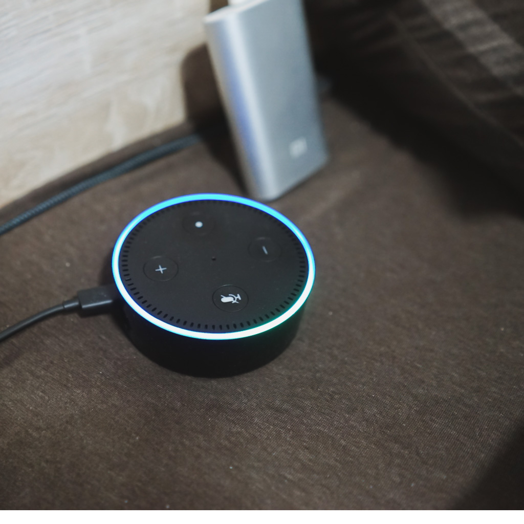 我的使用流程是:听到起床闹钟后,我会喊一声「Alexa,play music」,Echo Dot 便会开始通过 Spotify 播放音乐。我将 Echo Dot 放在我的床头,虽然它体积有限,内置的音箱音质也很一般,但是作为起床铃很合适。