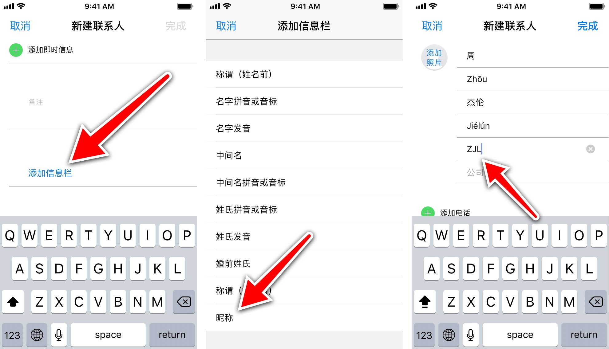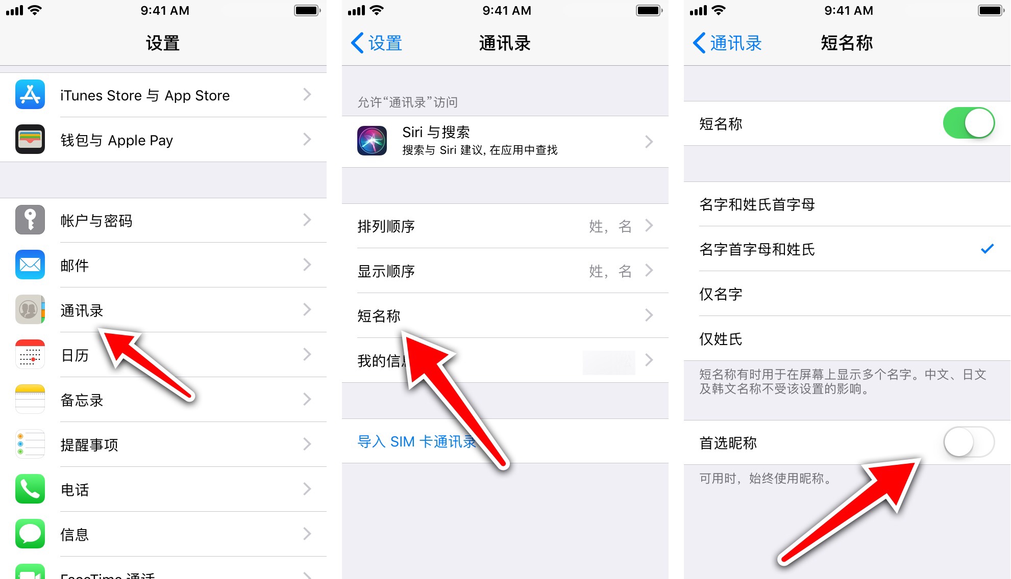 注意,为联系人添加这一条目后,通讯录中会默认显示联系人的昵称,有时会带来不便。想要关闭这种显示方式,需要进入系统设置,通讯录,短名称,关掉首选昵称这一项。