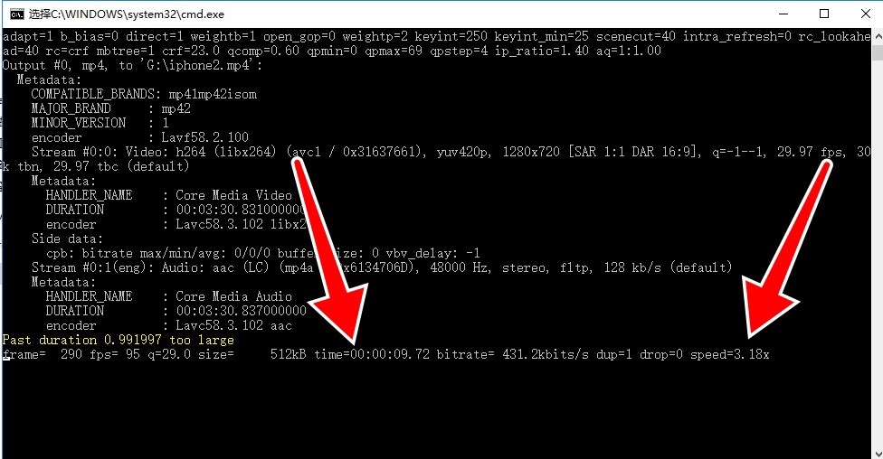 CMD 窗口中会实时显示显示转码进度和速度,最终转码完成后,会提示「单击任意键以继续」。