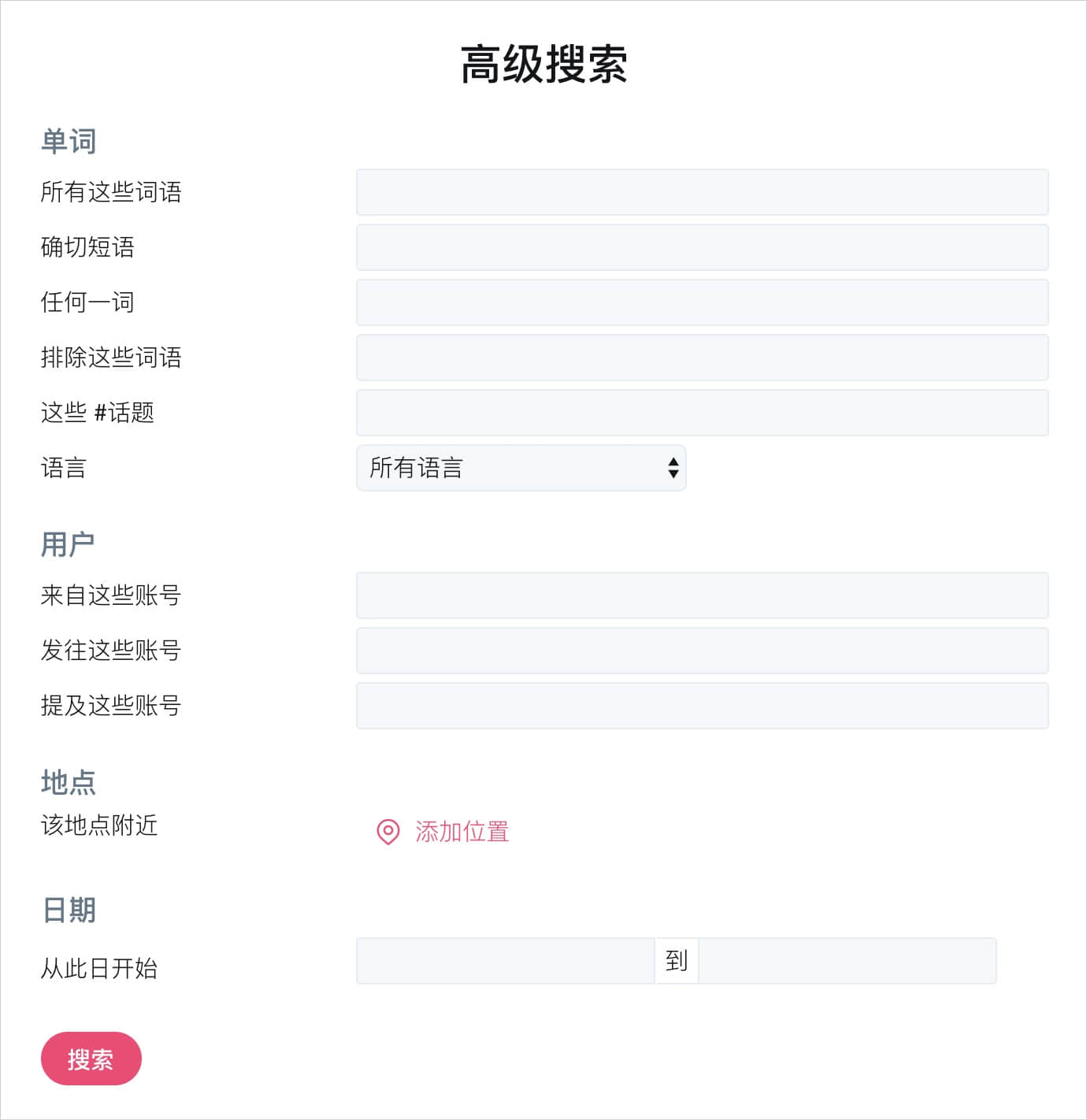 这些纯粹的网络服务,给了我们一个完整的搜索界面,在这个界面里,我们可以根据自己的需要来选择自己的搜索条件。比如我要在 Twitter 搜索我看到的一条来自他人的推文,我想不起来完整内容了,但是我知道是谁发的、大概是几月发的、还知道有哪个关键字,三个点串起来,可以把搜索范围缩小很多。