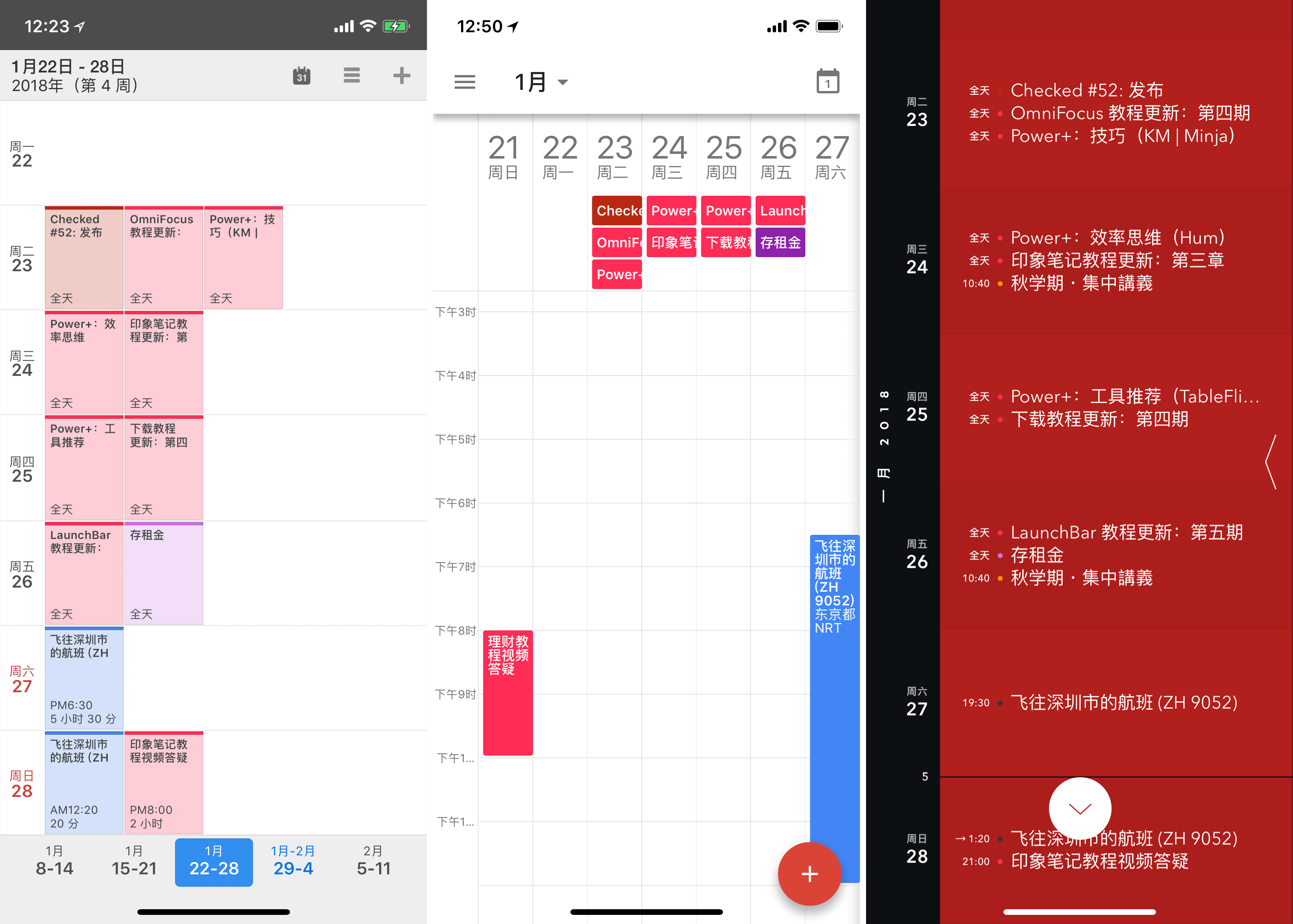 iPhone 上的查看:Timepage 在列表视图和周视图的结合思路最出色,我个人最偏爱;