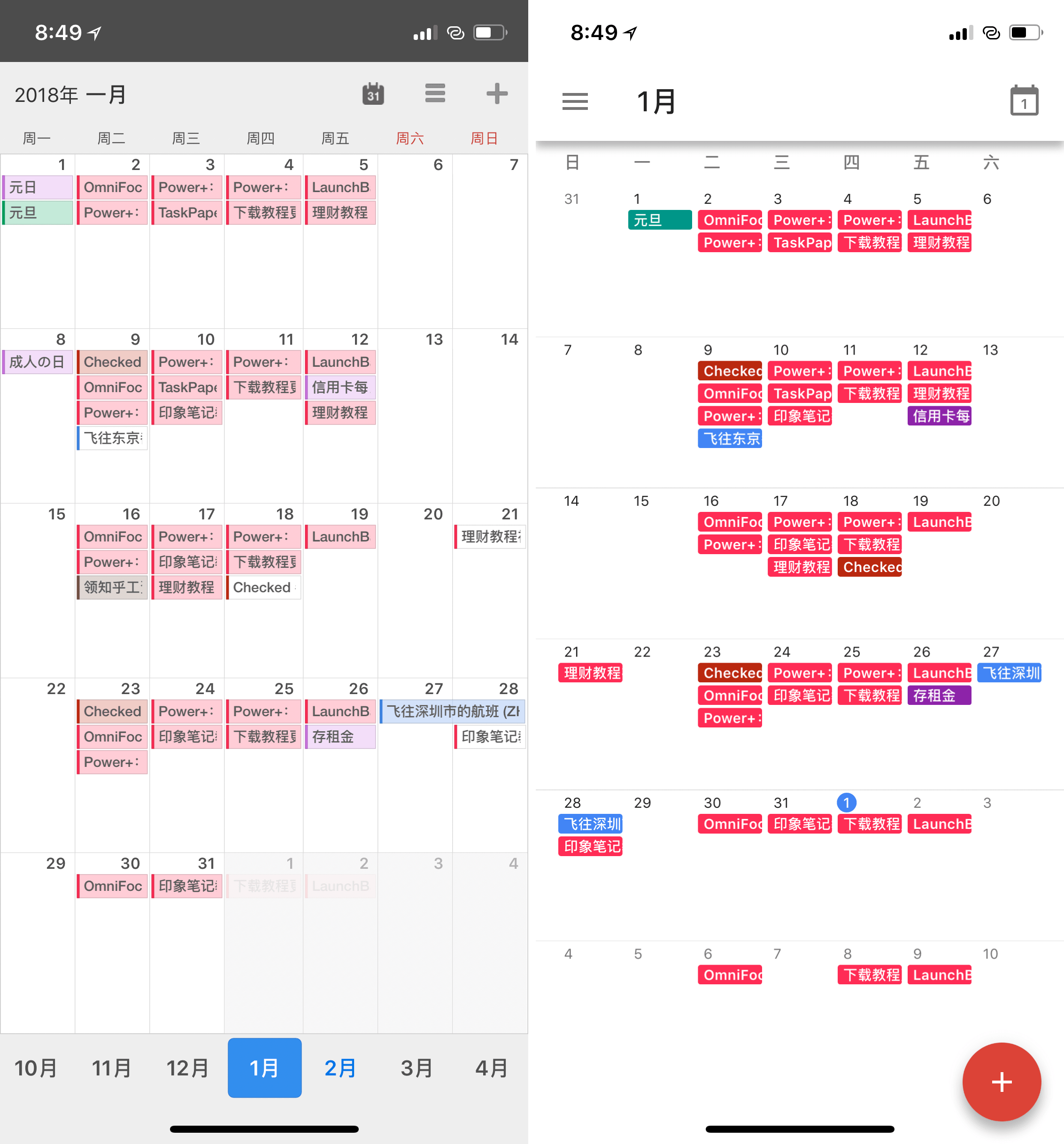 首先,在竖屏情况下,iPhone 原生日历保留使用情境较少的年视图、跳过周视图的设计不算是一步好棋。为了完整且美观地展示信息而从便捷上妥协令我不大满意。