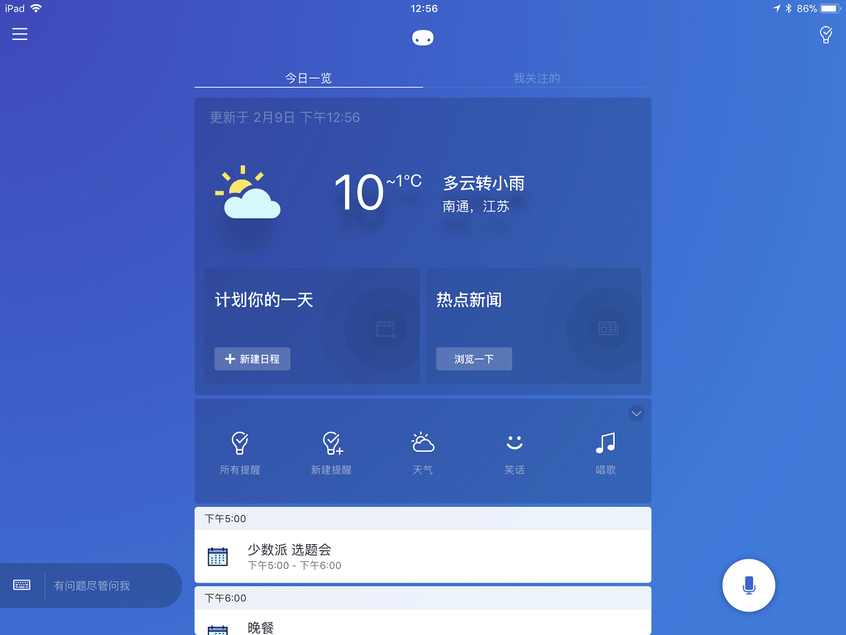 Cortana 在国内有个更为熟悉的名字:微软小娜。你可以通过语音问问题,她会通过数据分析准确回答你的问题。在 iOS 下由于权限限制,无法在锁屏界面下直接唤醒。通常起到提醒、推送、查询等作用。