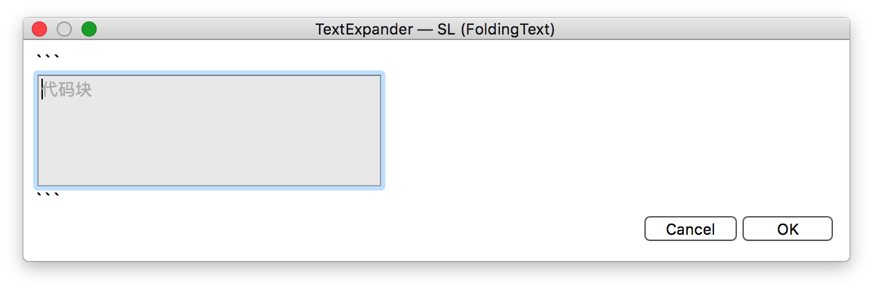 因为 TextExpander 多用于写文章时使用,所以光标的位置也可以拿来做文章。比如说,我自己特别常用的一个做法是在输入行内代码的时候,让我的光标自动返回到两个代码中间: