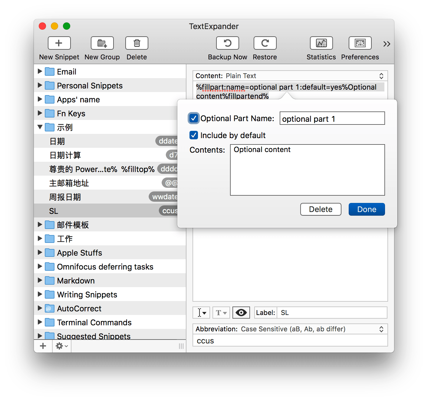 在这篇文章的开始,我介绍了 TextExpander 的 Snippet(片段)以及它的三个组成部分:Content、Abbreviation 和 Label。