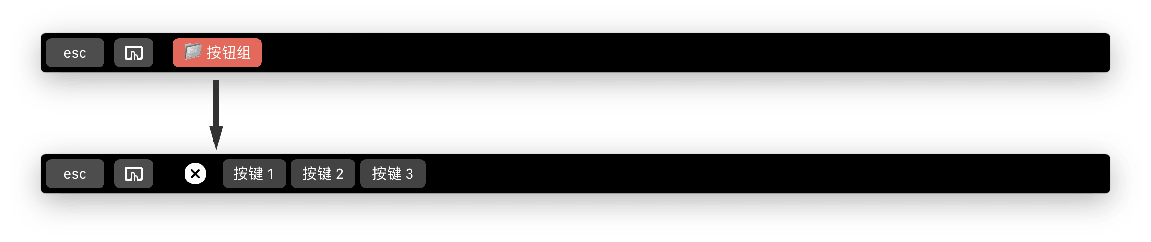 按钮组主要用于收纳和分类,点击后展开成多个普通按钮和小部件。同样也可以定制图标和名称等样式。