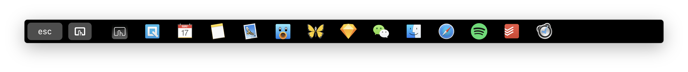 另外,也有人用 Touch Bar 来替换 Dock,用作应用启动器,并将原生 Dock 进行隐藏: