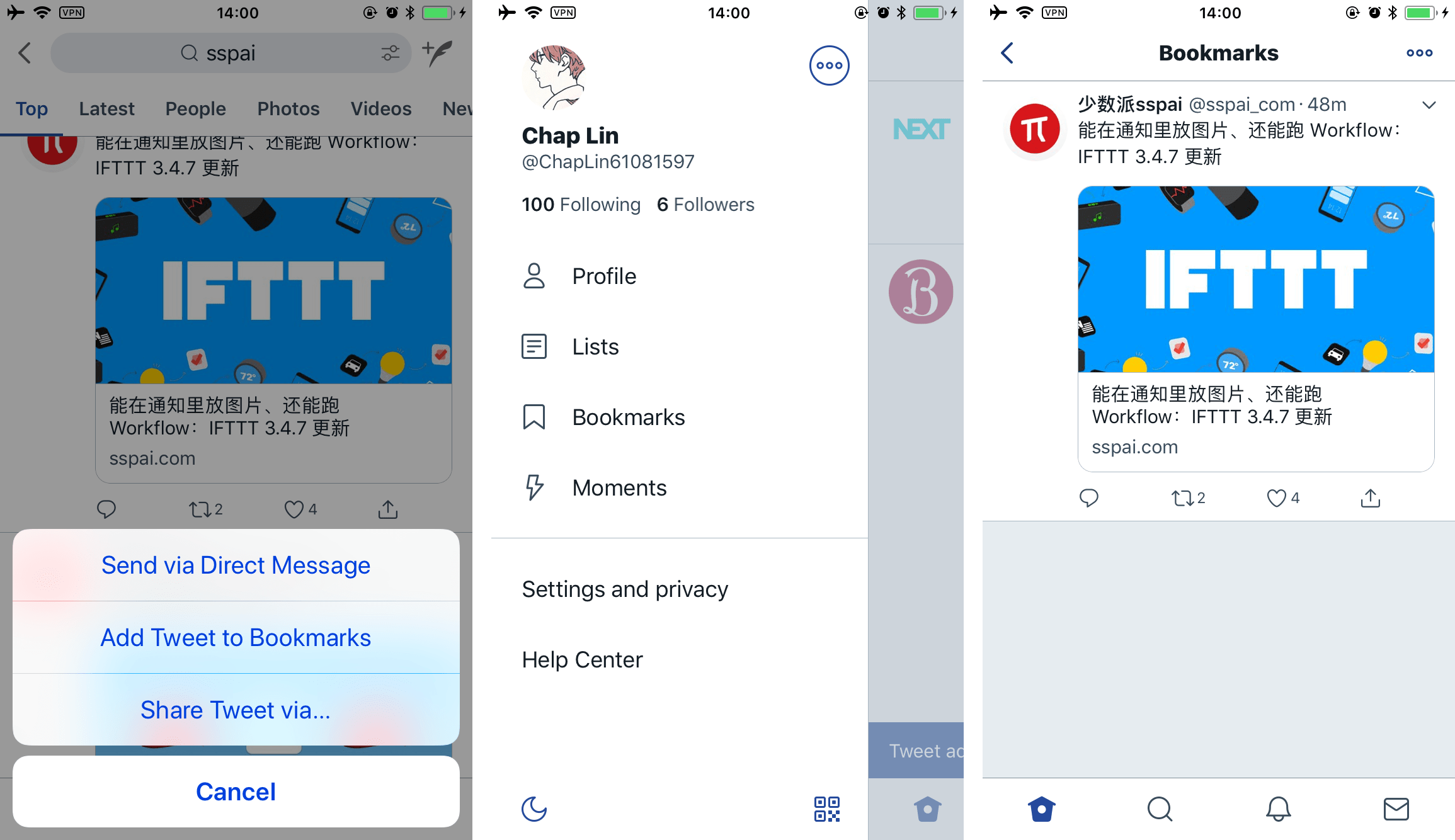 比起打开 Share Sheet 把推文保存到 Pocket,操作更简单、更不容易打断刷推连贯性的书签功能更得我心,为了这个功能,我甚至暂时从 Tweetbot 切换回了官方客户端,享受这个简易版的「稍后读」。不过以 Twitter 对于 API 相对开放的态度,日后我们或许也能够在第三方客户端上使用书签。