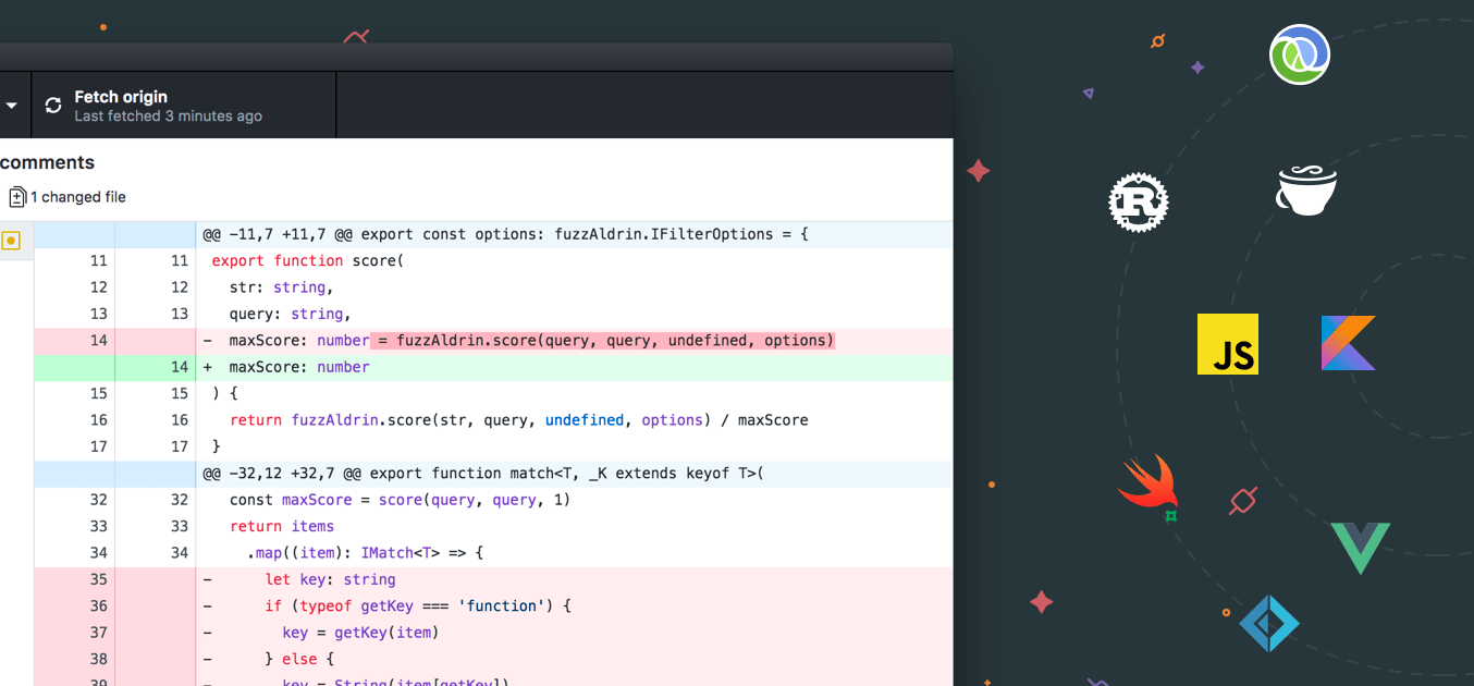 GitHub Desktop 作为一款开源客户端,其中的很多功能都是由热心的程序员们提交并被加入到正式版本中的,本次更新中新增了对 TextMate(macOS 下的一款文本编辑器)和 RubyMine(一款 Ruby IDE)对 Elixir 语言(基于 Erlang 虚拟机的编程语言)的语法高亮显示。