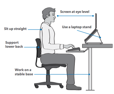 那么,站立办公时的良好姿势是怎样?其实上半身和坐下时一样,继续保持胳膊和前臂垂直。下半身能够自然站直、不至于垫脚或弯腰。