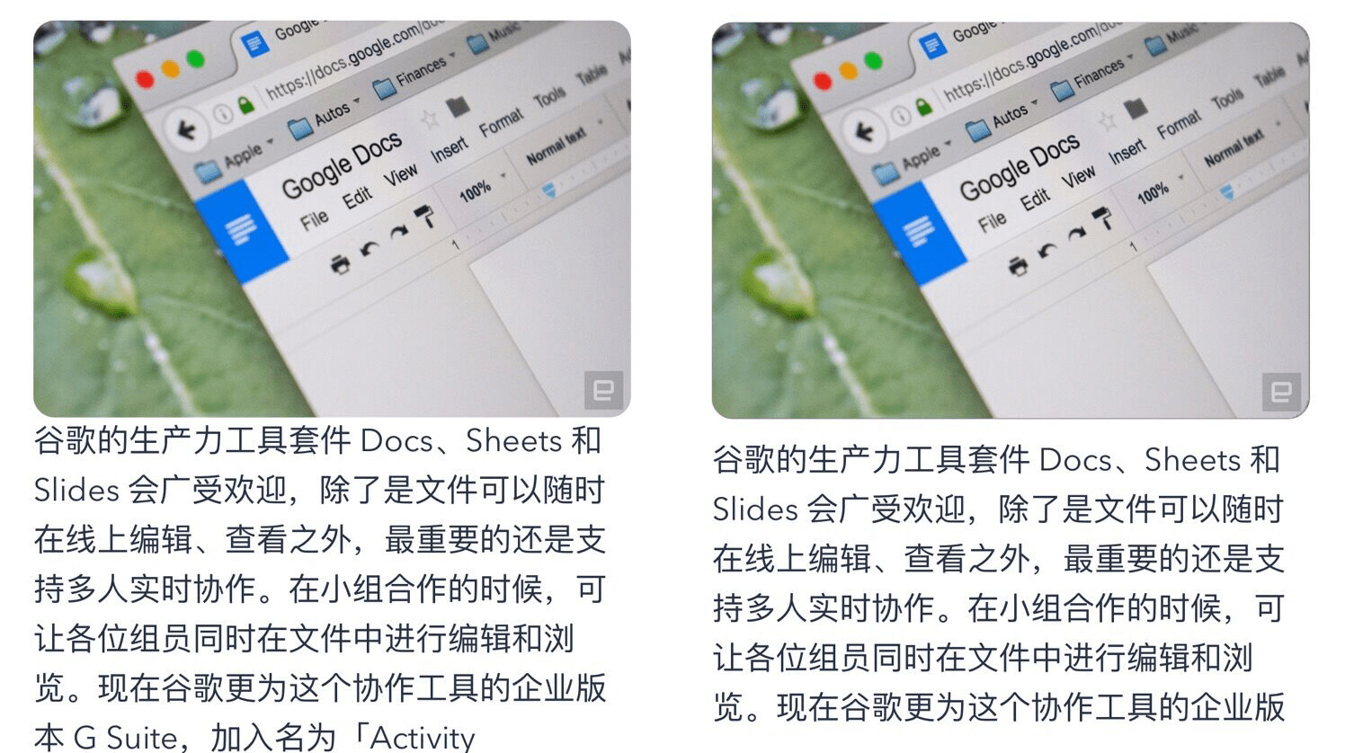此外,还改进了阅读体验,主要体现为增加了图片与文字之间的默认间距(此前需要手动调整),如今的间距显然更自然一点。