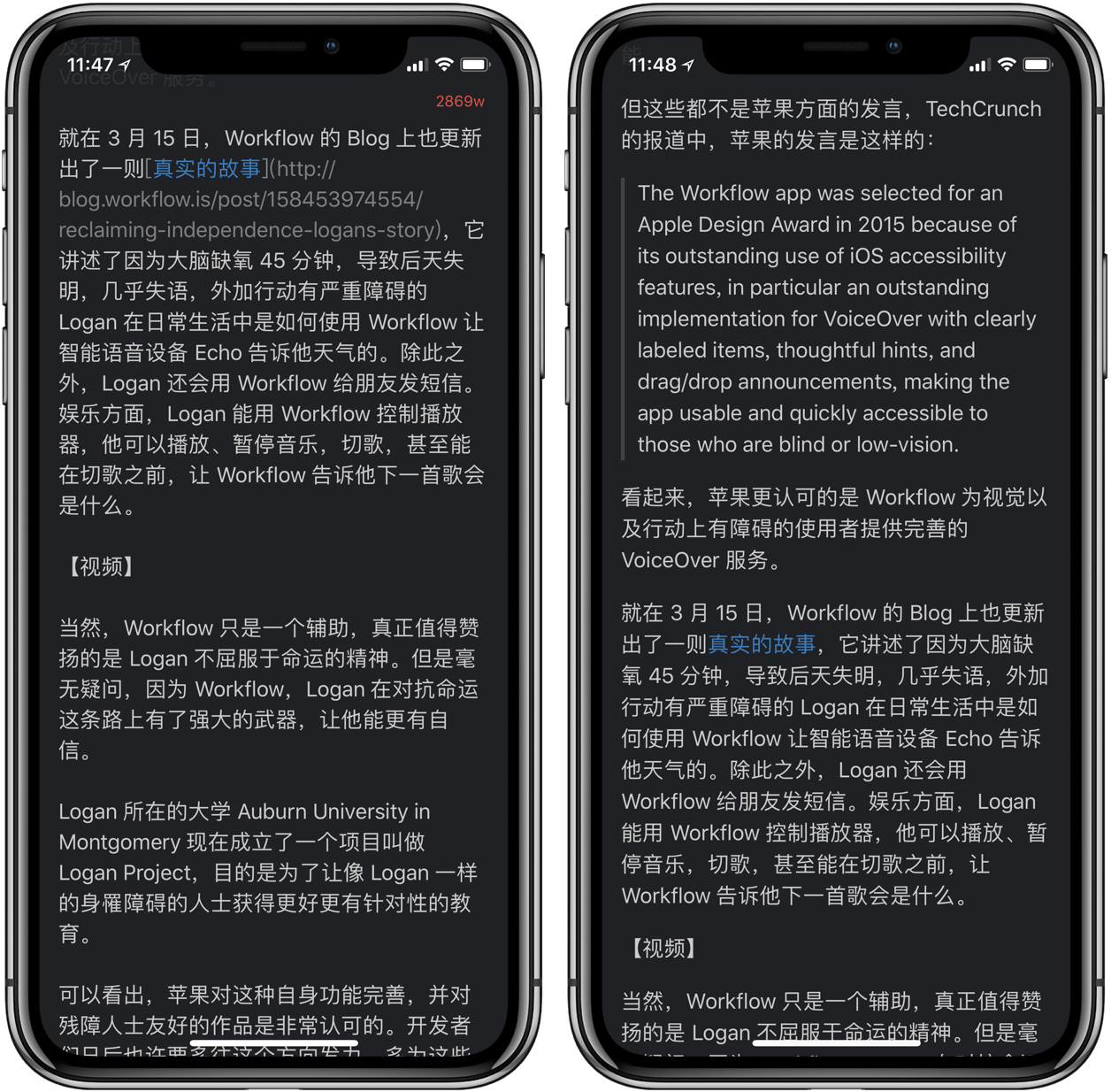 发布后第三天 Textor 就迭代到 1.1 版本,增加了黑暗模式、字体调节和分享菜单,进化为一个功能相对完整的编辑器。