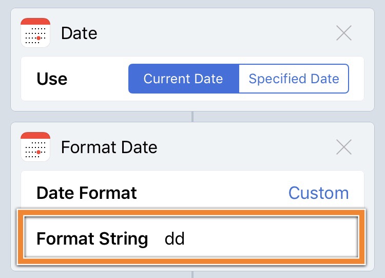 我们先来解决第二个问题,首先用「Date」获取当前日期,并用「Format Date」将日期格式转化为 dd,也就是只有「年月日」的「日」。