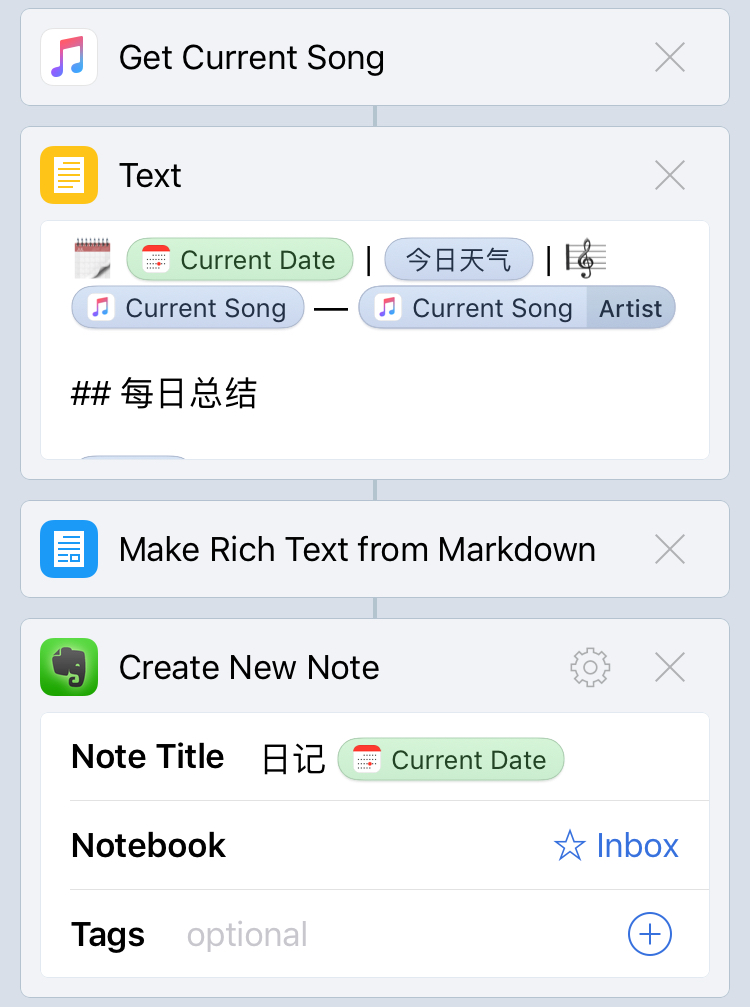 用 Workflow 记日记到 Evernote
