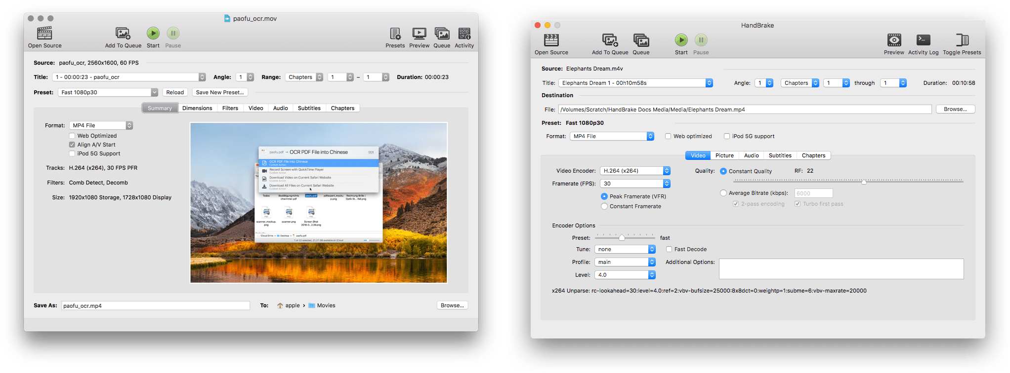 HandBrake 是 macOS 上一款免费、开源的视频转换工具,基于知名命令行视频转换工具 FFMpeg,支持丰富的格式,并拥有较高的压缩率。