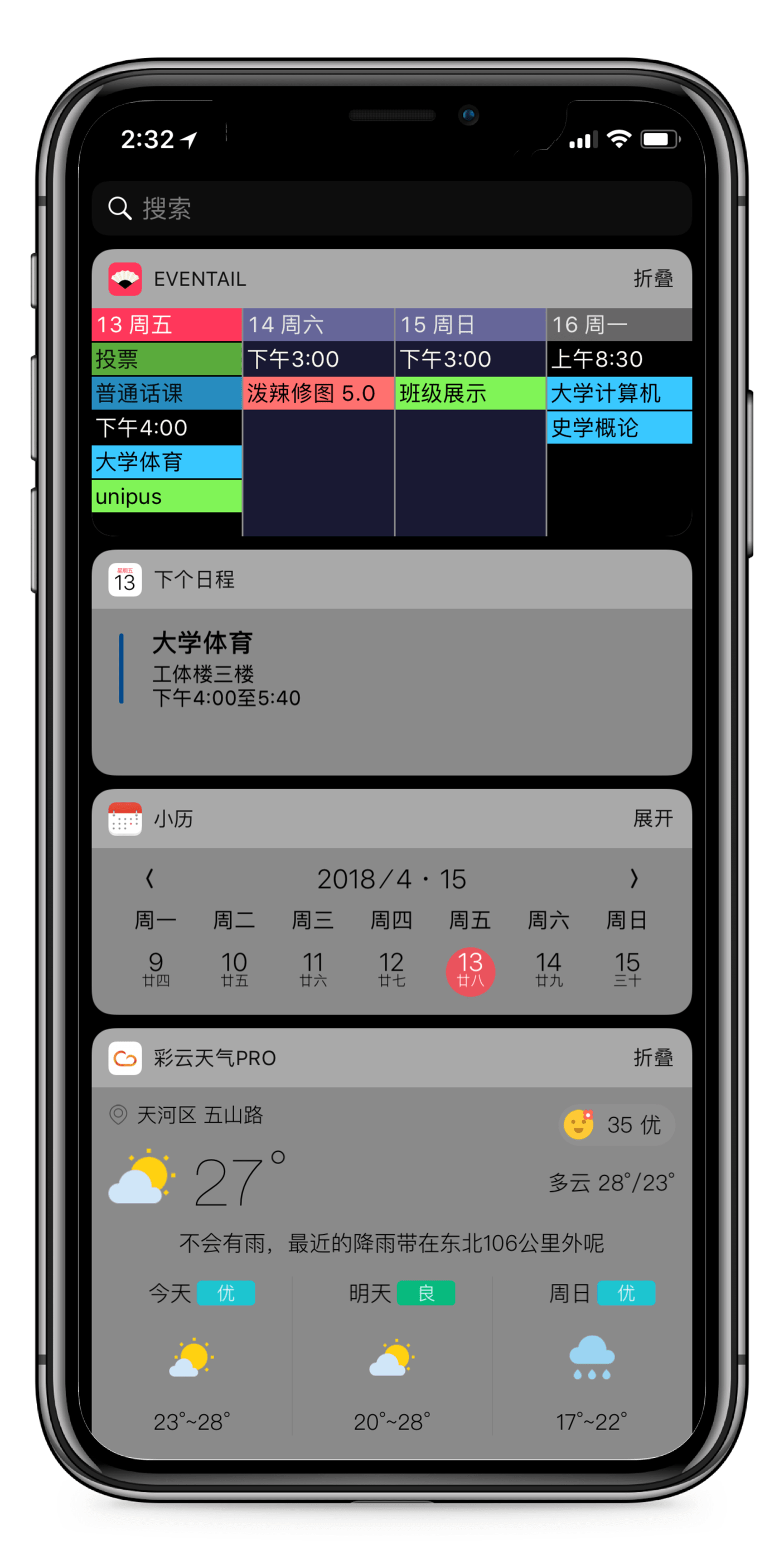 Eventail 是一款 iOS 上的日历 Widget 插件,可以同步原生日历、Fantastical 或 Week Calendar 中的日程数据,并用紧凑的形式在 Widget 界面中展示。