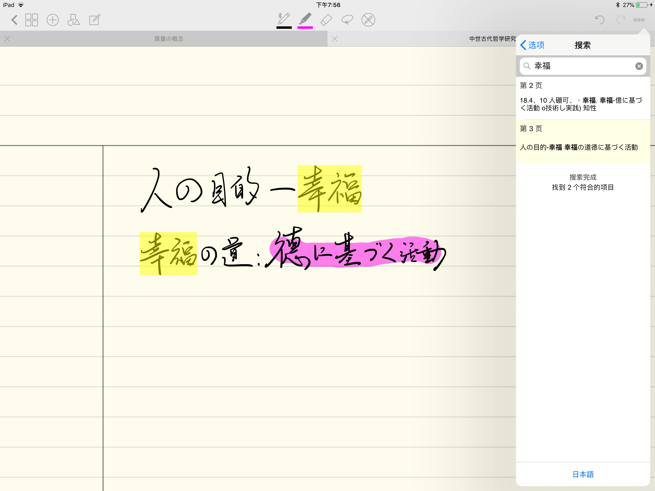 硬件需求的问题解决后,在 iPad 上进行手写笔记的好处就迅速地凸显了出来:翻手可查词、覆手能维基,随手插图、随意标记,笔记便携不易丢、手写内容也能搜,写错了之后也可擦、可撤销、可移位,等等等等。