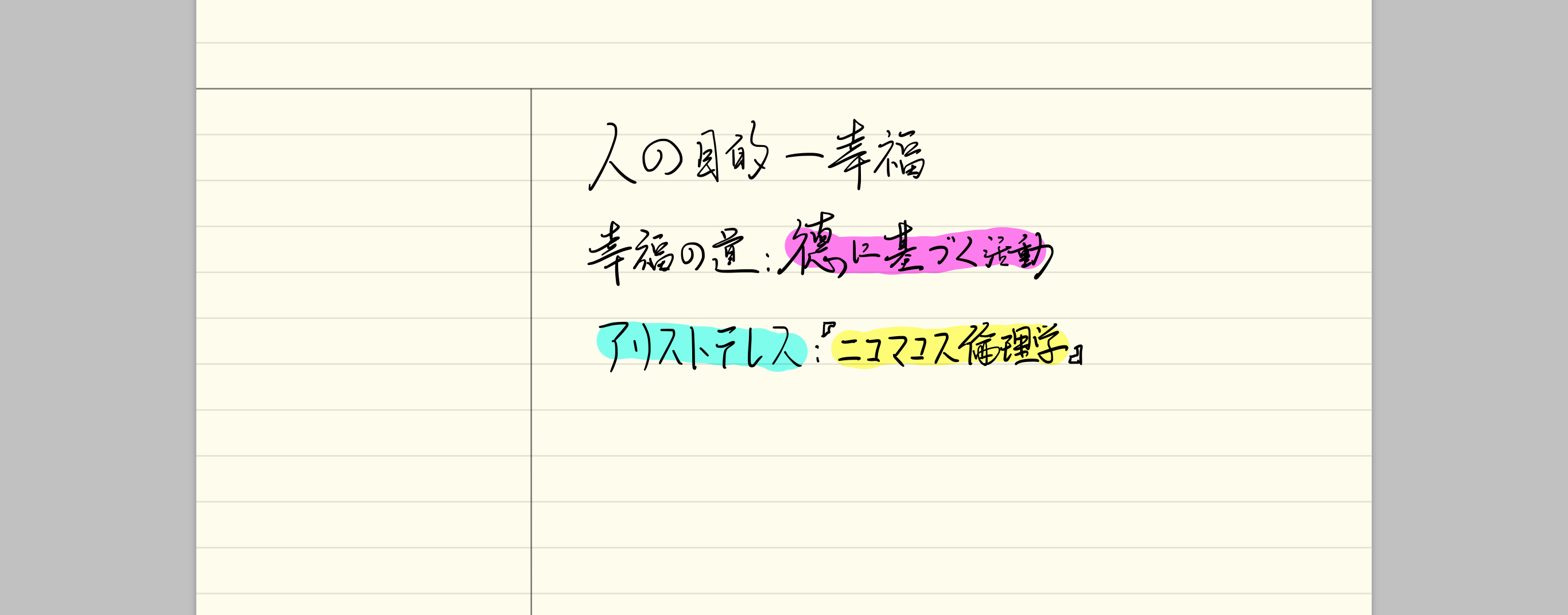 如图所示,在用 GoodNotes 做笔记的时候,我使用的标色思路是标底色,主要用了红、黄、蓝 3 种不同的颜色: