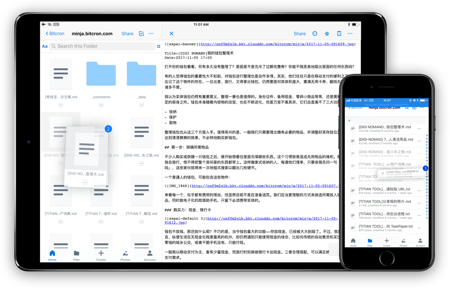 同时,新版还能在 iPad 上显示全屏文件导航,左侧显示文件列表、右侧则是预览界面,不浪费 iPad 的大屏幕。