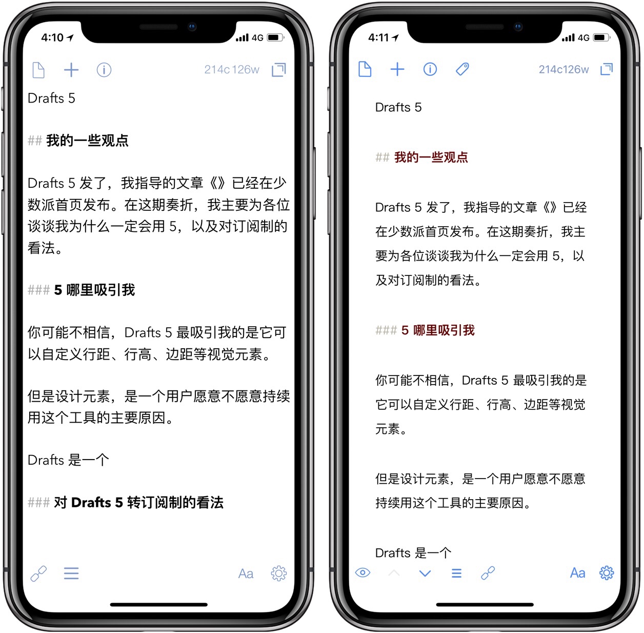 你可能不相信,Drafts 5 最吸引我的是它可以自定义行高、边距等视觉元素。