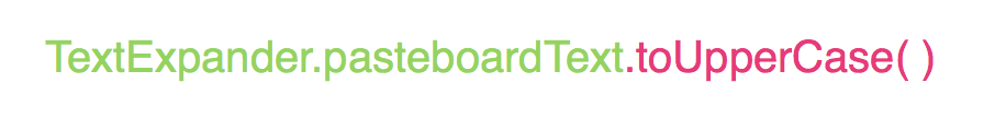 左侧这一串代表一个 TextExpander 的自带变量——剪贴板内容(后一节会介绍去哪里寻找这些应用自带的函数或变量),而点号 . 后面的 toUpperCase( ); 则是一个函数,用于将点号前的内容变成大写。