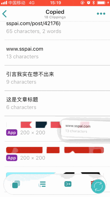 Copied 是一款自定义程度颇高的剪贴板管理工具,和 TextExpander 一样,它也有 iOS 和 macOS 两个版本,同样支持 JavaScript。Copied 的 JavaScript 模板有两种,第一类的作用也是文本的格式转换,和 TextExpander 类似,这里不再赘述,另一种 Merge Script 则比较厉害,可以用一定的格式组合多条剪贴板历史记录,我曾经专门写过文章 《用 Copied 组合剪贴板历史记录 | 工作日志》(Power+ 专属),这里直接引用模板和效果图: function merge(clippings) {
