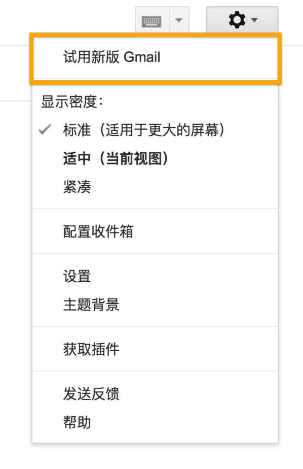 如果你想尝试这个新功能,只要打开 Gmail 的网页端,点击在右上角的齿轮,再点击试用新版 Gmail 即可。