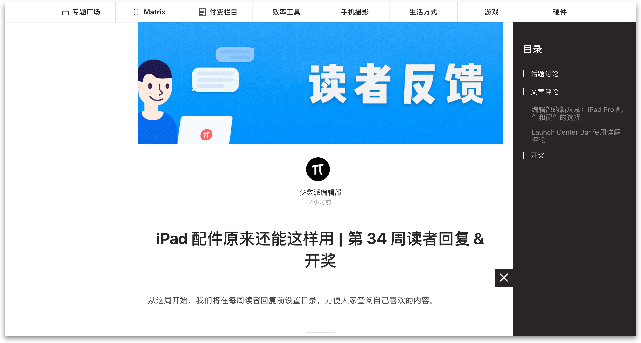 从这周开始,我们将在每周读者回复前设置目录,方便大家查阅自己喜欢的内容。